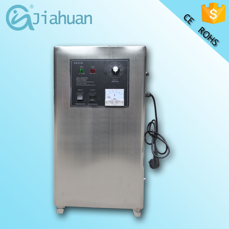 臭氧配置列表 一、HY-005-10G臭氧發(fā)生器: (一)、產(chǎn)品組成: 10G電源模塊 (1個(gè)) 10G石英管 (1個(gè)) 電流表 (1個(gè)) 電源指示燈 (1個(gè)) 臭氧指示燈 (1個(gè)) 風(fēng)扇 (2個(gè)) 臭氧輸出口 (1個(gè)) 氧氣輸入口 (1個(gè)) 120分鐘定時(shí)開關(guān) (1個(gè)) 電源保險(xiǎn) (1個(gè)) 氣 泵 (1個(gè)) (二)、產(chǎn)品特點(diǎn): 1、風(fēng)冷,單冷設(shè)計(jì) 2、空氣、水處理兩用 3、外殼為不銹鋼 4.機(jī)器自帶定時(shí)器(120分鐘) (三)、設(shè)備參數(shù) 機(jī)箱尺寸:32*26*58cm 包裝尺寸:38.5*32.5*71CM 臭氧產(chǎn)量:10g/h 輸入電壓:220V 50Hz 功率:180 W 規(guī)格:箱式 機(jī)器重量:10.9KG 毛重:12.3KG 臭氧濃度:10-15mg/L 空間處理:200立方